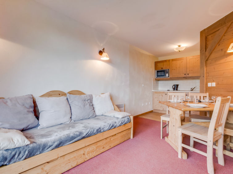 Apt 2 pièces 30 m2 au 3ème étage, situation sud. Aménagement agréable: séjour/salle à manger avec 1 lit gigogne (2 pers. 2 x 80 cm, longueur 190 cm), TV (écran plat). 1 chambre avec 2 lits (80 cm, longueur 190 cm). Cuisine (lave-vaisselle, 4 plaques vitrocéramique, combiné micro-ondes). Salle de bains, WC séparé. Balcon. Vue sur la piscine. A disposition: sèche-cheveux. Internet (Connexion WIFI, en sus). Veuillez noter: logement pour non fumeurs. 1 animal/ chien autorisé. Détecteur de fumée.