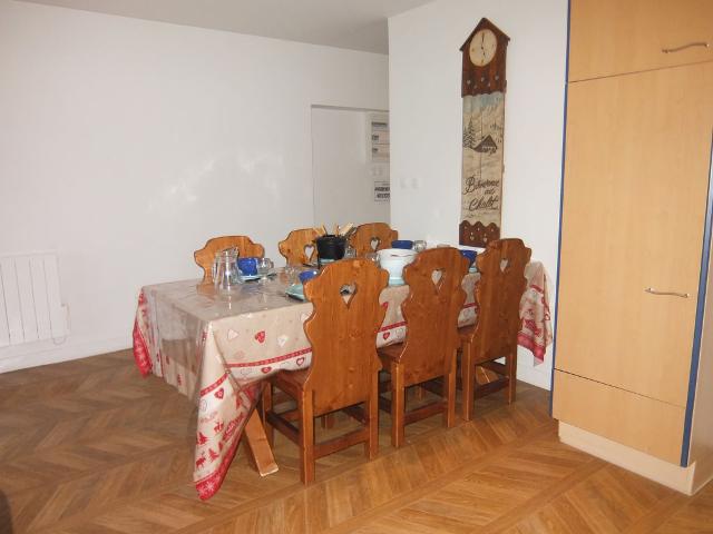 Apt 3 pièces 64 m2 au 2ème étage. Aménagement très agréable et plaisant: grand séjour/salle à manger avec TV et DVD. Sortie sur le balcon. 1 chambre avec 1 grand-lit (1 x 140 cm, longueur 190 cm). 1 chambre avec 1 x 2 lits superposés (80 cm, longueur 190 cm). 1 chambre, sans fenêtre avec 1 x 2 lits superposés (80 cm, longueur 190 cm). Grande cuisine/séjour (four, lave-vaisselle, 4 plaques vitrocéramique, four micro-ondes, congélateur, cafetière électrique) avec table pour les repas. Salle de bains, WC séparé. Chauffage électrique. Balcon 7 m2, situation sud. Vue sur les montagnes et la localité. A disposition: fer à repasser, sèche-cheveux. Internet (Connexion WIFI, en sus). Place de parking No 13 près de la maison. Veuillez noter: logement pour non fumeurs. Détecteur de fumée. ATTENTION : LA REMISE DES CLEFS DES LOGEMENTS DE LA TOUSSUIRE SE FAIT AU BUREAU INTERHOME DU CORBIER A 4 KM. POUR LES ARRIVEES EN BUS, MERCI DE NOUS CONTACTER 48 HEURE A L'AVANCE AFIN D'ORGANISER VOTRE REMISE DES CLEFS. SERVICES SUPPLEMENTAIRE PAYANT POSSIBLE: 30 EUROS.
