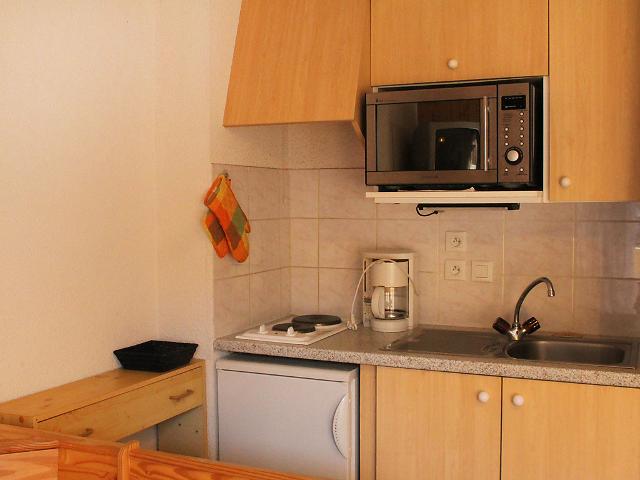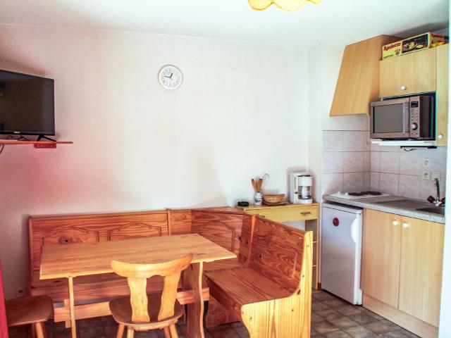 Studio 25 m2 au 1er étage. Entrée. Séjour/salle à manger avec 1 divan-lit double et TV. Cabine avec 1 x 2 lits superposés. Coin cuisine (2 plaques de cuisson, mini-four). Salle de bains, WC séparé. Balcon, situation ouest. 1 animal/ chien autorisé.