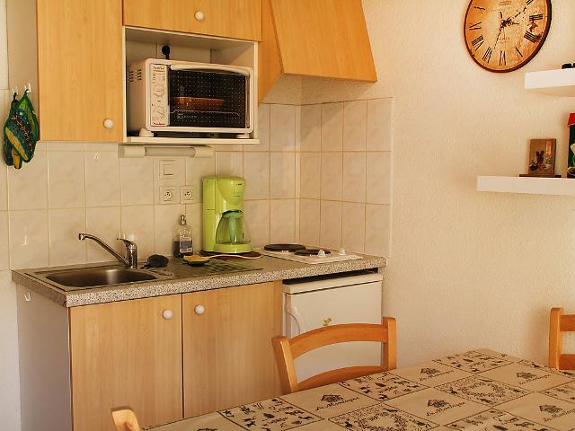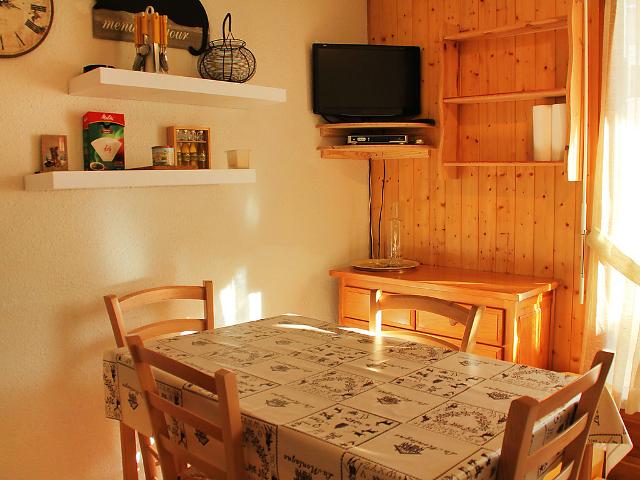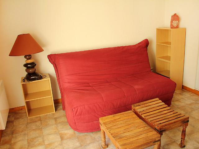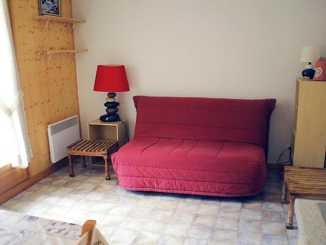 Studio 20 m2, rez-de-chaussée surélevé: entrée avec 1 x 2 lits superposés. Séjour/salle à manger avec 1 divan-lit double et TV. Coin cuisine (2 plaques de cuisson, mini-four). Salle de bains, WC séparé. Balcon, situation sud. Place de parking No A4. 1 animal/ chien autorisé.