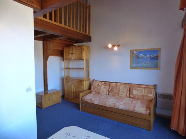 La résidence :Résidence du CRET DE L'OURS1650 m d'altitude, quartier de Vallandry-le-golfGrosse résidence mitoyenne de celle de l'aigle, en 2 parties : I et II. A 300 m par chemin piétonnier en amont du centre de Vallandry. Même distance pour les commerces de Plan-PeiseyHiver : en bordure (ou 50m suivant enneigement) d'une piste de ski. A 100 m. en amont du télésiège principalÉté : à 300 m de la forêt, au départ de randonnées sur le versant adret.Façades principales : sud-est et nord-ouest. Belles vues panoramiques.6 étages avec 2 ascenceurs. Casiers à ski. Parking public à 200 m.Le logement :4ème étage. Balcon orienté nord/est. Très belle vue sur les pistes, le Mont-Blanc et la vallée.Séjour avec 1 lit simple + 1 lit tiroir. Télévision.Mezzanine avec 3 lits simples pouvant se fermer avec un volet roulant.Cuisine avec 2 plaques électriques, réfrigérateur, lave-vaisselle et four combi/micro ondeSalle de bain avec baignoire sabot et lavabo. WC séparés.Casier à ski. parking public.
