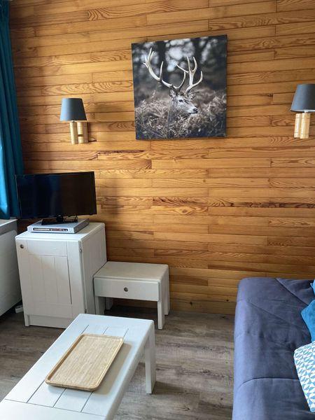Le séjour divisible dispose d'un lit simple plus un lit tiroir coté salon et d'un canapé convertible, coté repas. Tous les lits sont équipés de couettes.