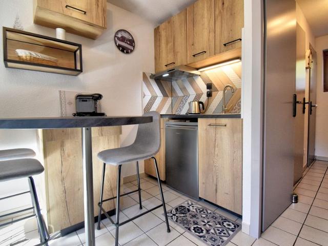 * Coin cuisine avec mange-debout + 4 chaises hautes, 2 plaques induction, micro-ondes, bouilloire, cafetière tassimo.