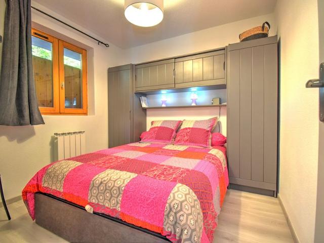 - une CHAMBRE avec lit double (coffre de rangement sous le lit / 140X190 - Couette), armoire de rangement, fenêtre donnant sur le SAS d'Entrée.