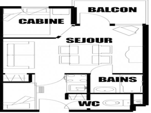 COUCHAGES : Séjour : 1 canapé lit clic clac 2 personnes, Coin montagne : 2 lits superposés (le couchage en hauteur ne convient pas aux enfants de moins de 6 ans),