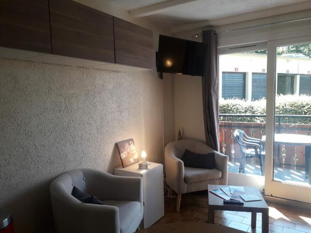 Entrée avec coin nuit, Séjour avec kitchenette, Salle de douche avec wc.