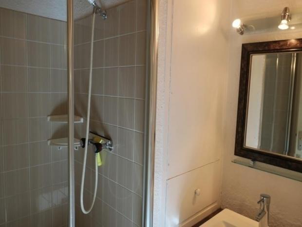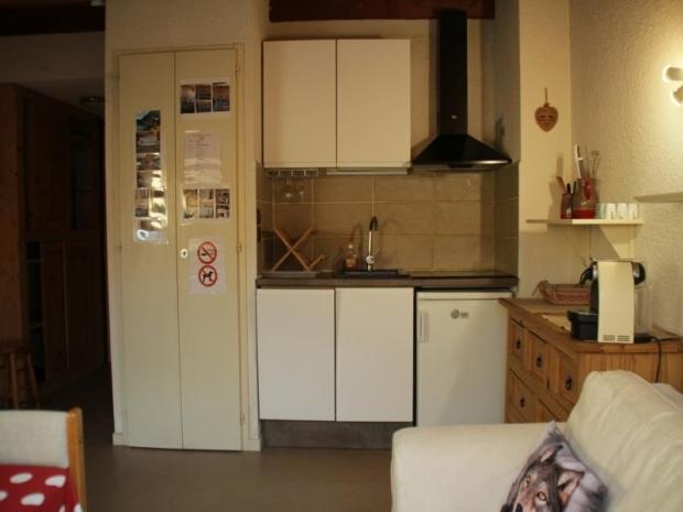 Séjour avec coin cuisine, chambre, douche et wc séparés.