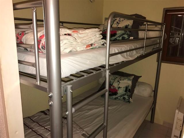 Joli studio cabine qui comprend : une entrée avec un coin cabine équipé de 2 lits simples superposés; une salle de bains avec WC; kitchenette équipée avec lave vaisselle, séjour avec canapé BZ convertible couchage double en 140, une télévision écran plat et lecteur DVD; une loggia exposition Est. Décoration soignée, parquet au sol. Pas de placard à skis.