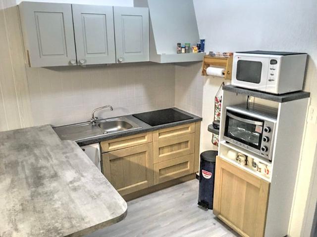 - KITCHENETTE : plaques de cuisson, four, four micro-ondes, cafetière Senséo + cafetière classique à filtre, réfrigérateur, coin repas avec 4 tabourets de bar, service à raclette, service à fondue, grille-pain, fer et table à repasser.