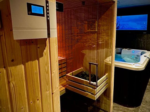 Chalet individuel de particulier : Confortable et agréable, ce logement de 155m² bénéficie d'un balcon, d'une terrasse et d'une cuisine toute équipée. Sur place, profitez également d'un bain à remous et d'un sauna. Des prestations supplémentaires telles que la location de linge de toilette et l'accueil des animaux sont disponibles moyennant un supplément.