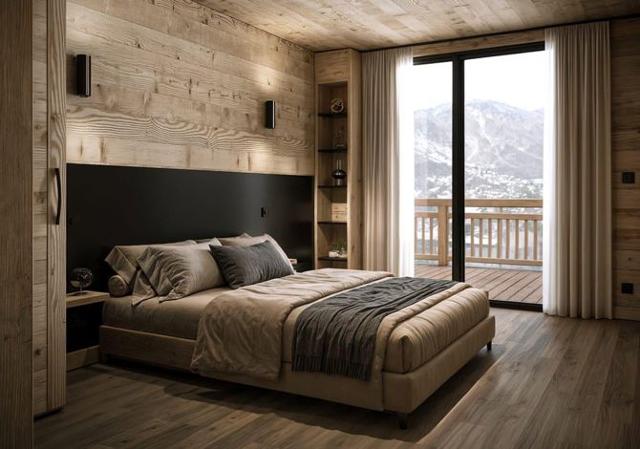 Chalet : Elégant et spacieux à l'architecture boisée. Logements confortables et tout équipés. Sur place, profiter d'un bain à remous sur la terrasse avec vue panoramique, d'un sauna, d'un local à skis et d'un parking privatif pour 3 voitures.