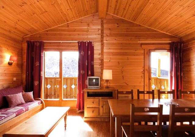 Chalets : Accolés ou individuels. Logements très agréables, habillés de pierre et de bois, chaleureux et bien équipés. Certains avec exposition sud et vue plongeante sur la vallée. Accès à la piscine couverte chauffé, au salon dans la résidence mitoyenne le Grand Panorama II.