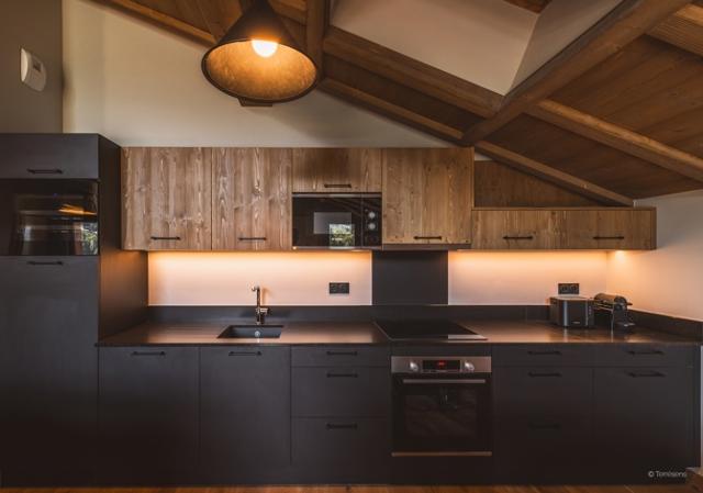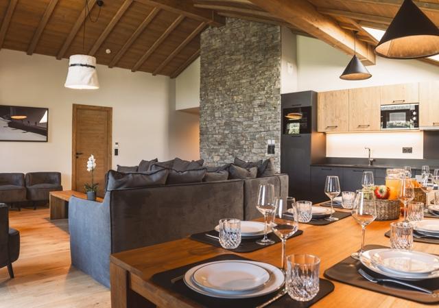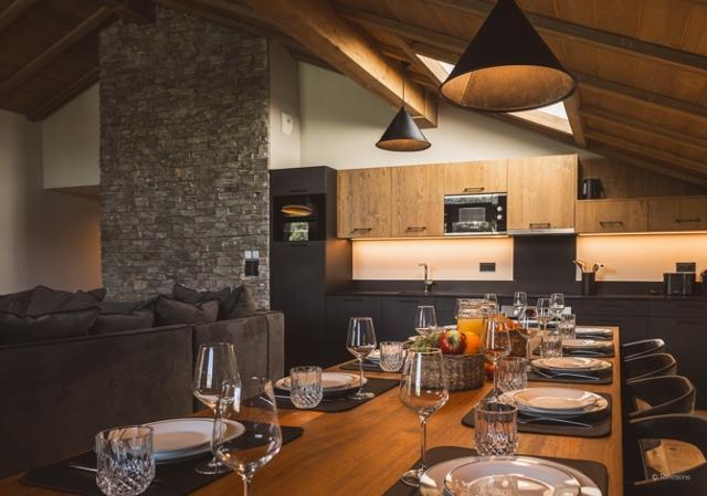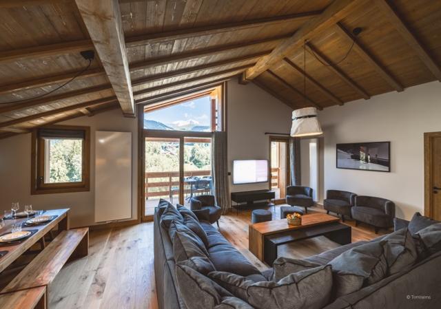 Situation : Située dans un quartier calme de Megève, à 5 minutes en voiture du centre-ville. Des navettes sont disponibles pour rejoindre le centre-ville et les pistes de ski.