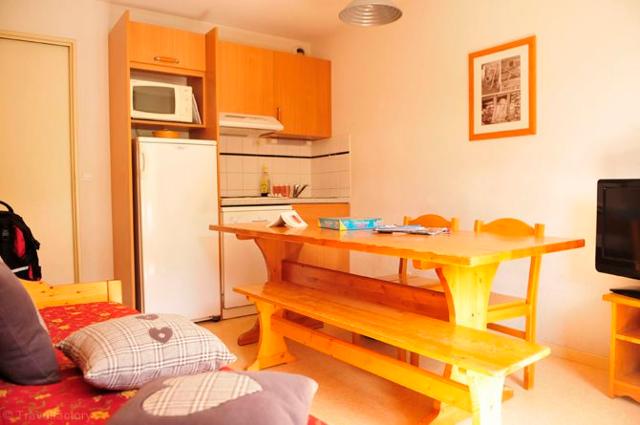 Résidence : Grand chalet en bois avec 43 appartements. Logements confortables avec balcon ou terrasse et télévision. Sur place : accès Wifi à la réception et parking gratuit.