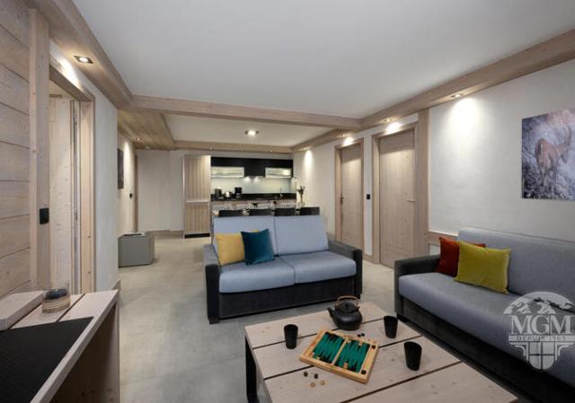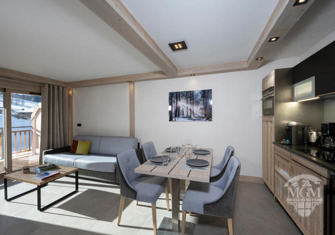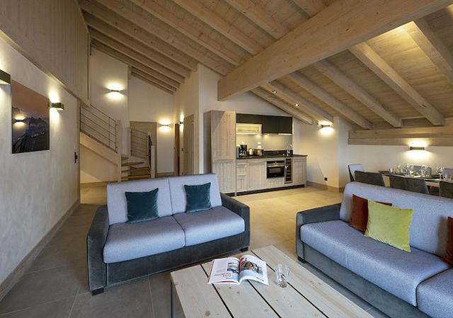 Résidence : Composée de grands chalets contemporains avec des appartements spacieux et élégants, avec Wifi inclus. Sur place : réception avec salon cheminée, bagagerie, local à skis équipé, ainsi qu’un vaste espace bien-être avec piscine intérieure, sauna, hammam, bain bouillonnant, salle de fitness et spa.