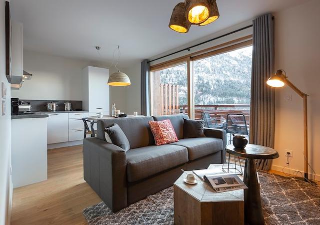 Situation : Situé à 1250m d'altitude sur un plateau ensoleillé, face au massif des Grandes Rousses. La résidence se trouve au centre de la station, avec un accès direct aux remontées mécaniques et à 100 m des premiers commerces.