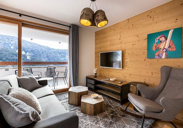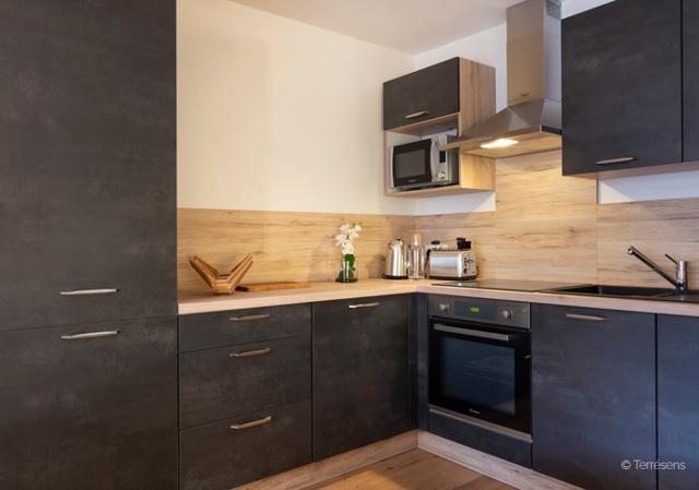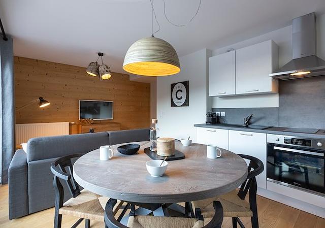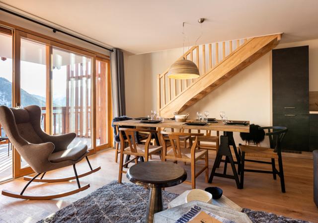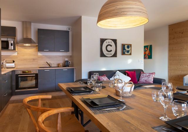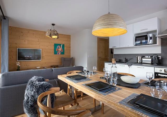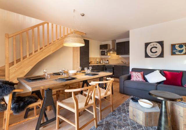 Résidence : L'hébergement propose 7 logements à la décoration raffinée et dispose d'un ascenseur. Sur place à disposition : un parking couvert, un accès Wifi et des casiers à ski.