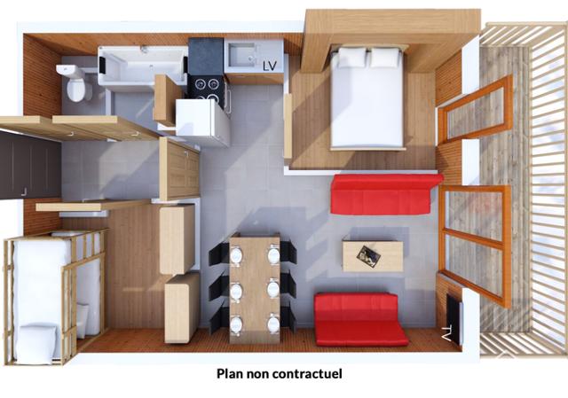 Situation : A 200 mètres des pistes, à proximité des commerces, tout en évitant les axes de grand passage.