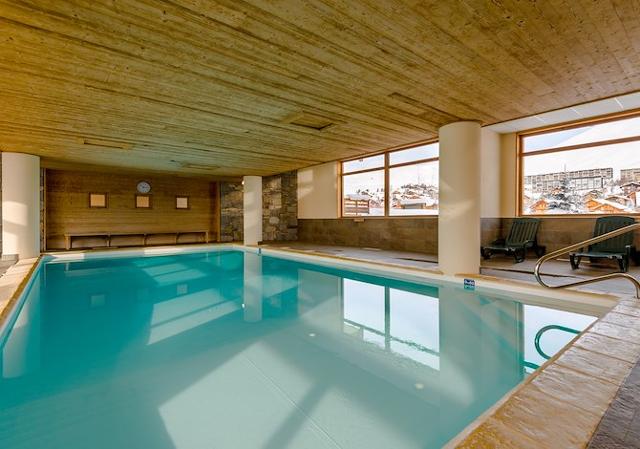 Résidence : À l'architecture élégante, composée de 85 appartements répartis dans 3 chalets de pierre et de bois de 3 et 4 étages (ascenseur). Sur place : wifi dans les logements (payant), piscine couverte chauffée (fermée le samedi), sauna et hammam (2 séances de 20 min de sauna ou hammam offertes/appartement/semaine).