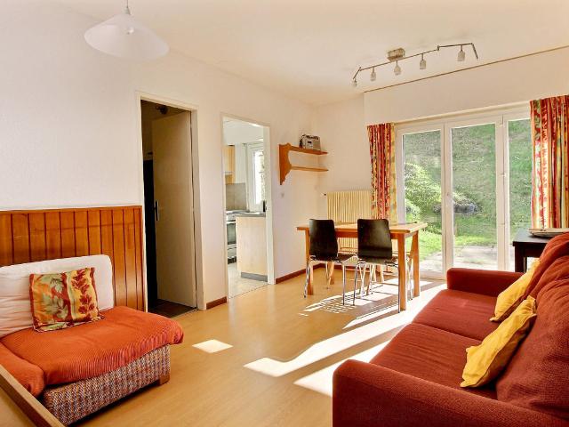 Accès/parking: Accès par un escalier. Accès par chemin piétonnier env. 50 m. Descente ski aux pieds possible jusqu'à la location.