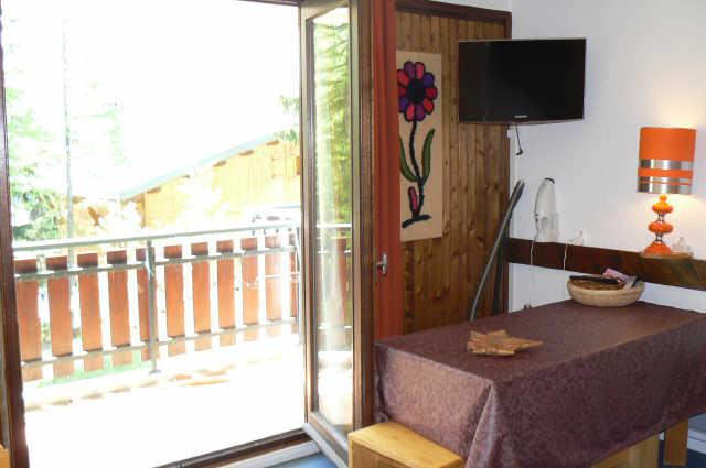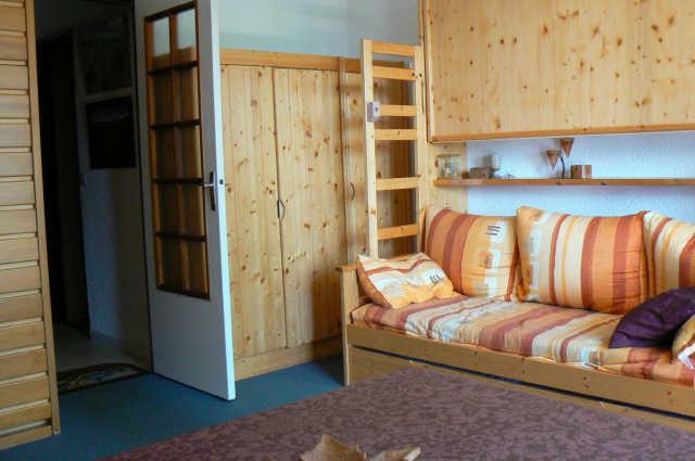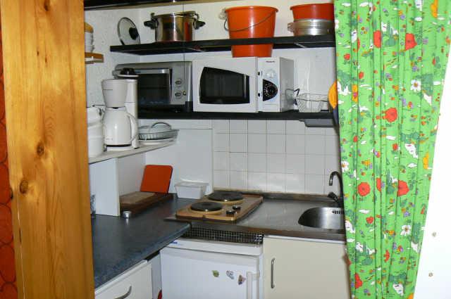 Studio de 23m², 3 personnes, avec une cuisine équipée dans l'entrée, salon avec un lit double rabbatable, un lit gigogne 2 pers.,1 lit simple rabbatable, télévision. Une salle de bain avec baignoire et wc.