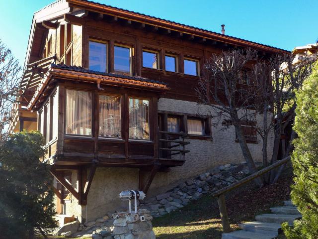 "Aphrodite", apt 3 pièces 70 m2 sur 2 niveaux au 1er étage, situation sud. Aménagement fonctionnel: séjour/salle à manger avec cheminée et TV (câblée). 1 petite chambre 6 m2 avec 1 grand-lit (1 x 130 cm, longueur 200 cm). Coin cuisine (four, lave-vaisselle, 4 plaques vitrocéramiques, service à fondue (fondue au fromage)) avec chauffage électrique. Douche/WC. À l'étage inférieur: 1 chambre avec 1 grand-lit (1 x 160 cm, longueur 200 cm), salle de bains. Sortie sur le jardin. Mobilier de balcon. Très belle vue sur les montagnes et les pistes de ski. A disposition: Internet (Connexion WIFI, gratuit). Place de parking No 8. Veuillez noter: logement non-fumeur.