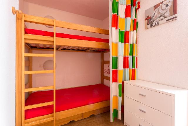 Cet appartement est composé d'un séjour - kitchenette, un coin montagne avec deux lits superposés, une chambre avec un lit double et une salle de bains avec les toilettes.