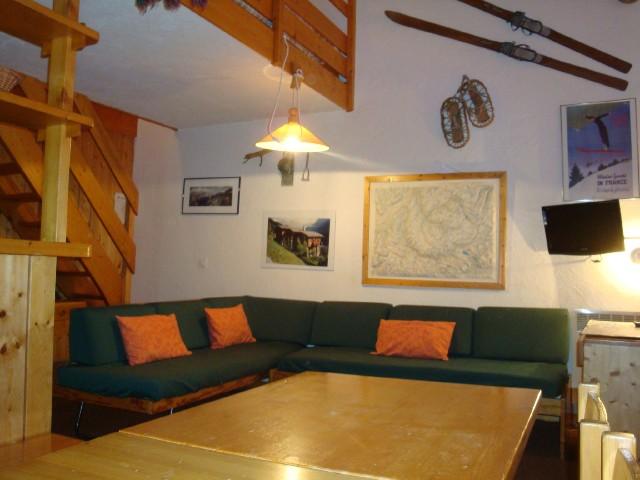 Séjour avec 2 banquettes lits, la télévision, lecteur DVD; prolongé d'une terrasse. Une chambre avec 2 lits simples. Salle de douches et wc.