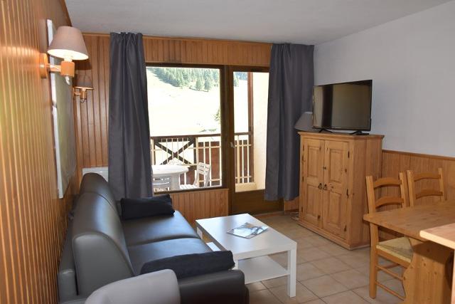Il est composé d'une entrée pour vous déchausser, d'un coin montagne avec des lits superposés rabatables, d'une salle de bains avec baignoire, d'un wc séparé, d'un salon avec canapé convertible pour 2 personnes et télévision donnant sur un balcon plein sud d'où vous pourrez profiter du panorama. La cuisine est équipée de plaques électriques, d'un mini lave-vaisselle, d'un micro-ondes, d'un mini-four et d'un frigidaire top.