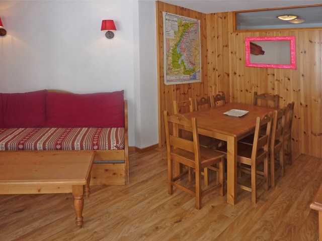 Dans une résidence 3 * avec accès gratuit à la piscine et au sauna, joli appartement équipé pour 8 personnes, vue sur les pistes, accès direct aux commerces, comprenant une entrée, un coin montange avec 2 lits superposés 1 place, une chambre avec 2 lits 1 place, une deuxième chambre avec 1 lit 2 places, un séjour avec 2 lits gigognes 1 place, un coin cuisine entièrement équipé, salle de bains et wc indépendants, balcon. Box à skis. Rez-de-chaussée.