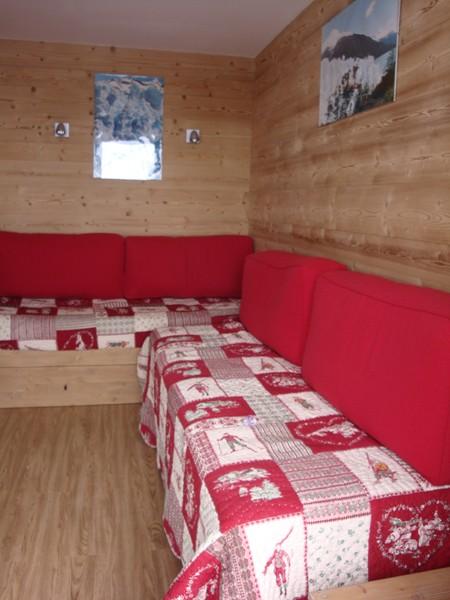 Le séjour avec balcon contient deux banquettes lits, un lit gigogne et la télévision.