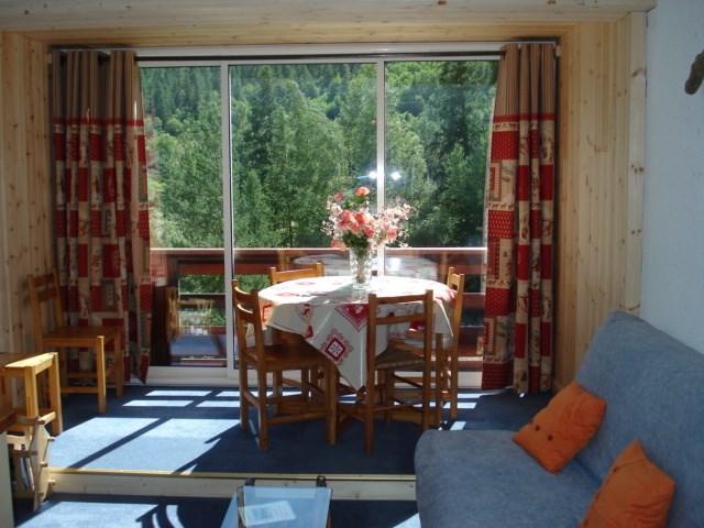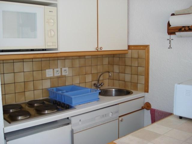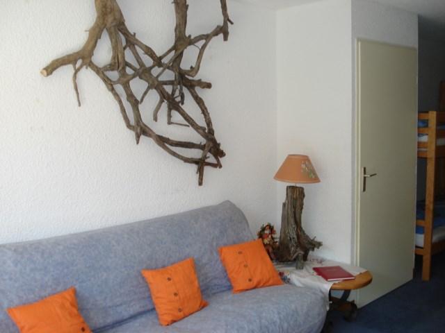 Ce studio de vacances à la montagne est organisé de la manière suivante: une cabine avec deux lits simples, un coin montagne avec des lits superposés, d'un séjour avec canapé-lit pour deux personnes avec télévision et une véranda exposée sud, un coin cuisine tout équipé, une salle de bain avec baignoire et des WC séparés.