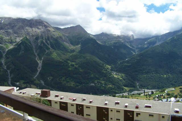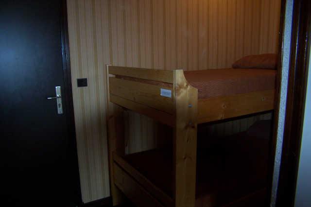Studio cabine 4 couchages de 26 m2 avec balcon sud ouest situé au niveau -3 par l'entrée du haut - vue vallée et montagnes - 1 canapé clic clac 2 places séjour et 2 lits superposés 1 place dans cabine non fermée - four plaques électriques, frigo et cafetière électrique, tv tnt - salle de bain ( baignoire ) avec wc séparés.