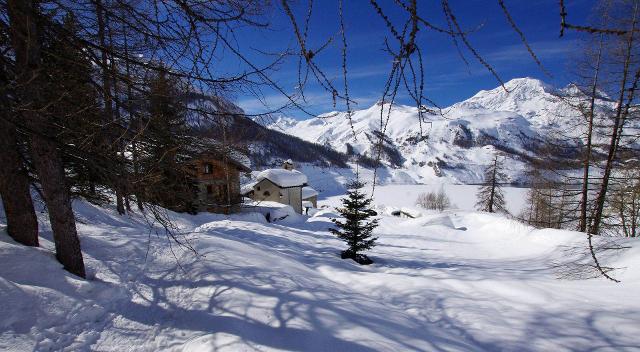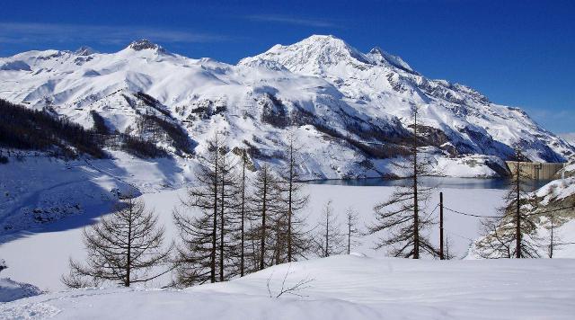 Situé à TIGNES – dans le village traditionnel de LA RECULAZ - le chalet est adossé à la forêt des mélèzes, et domine le Lac du Chevril.