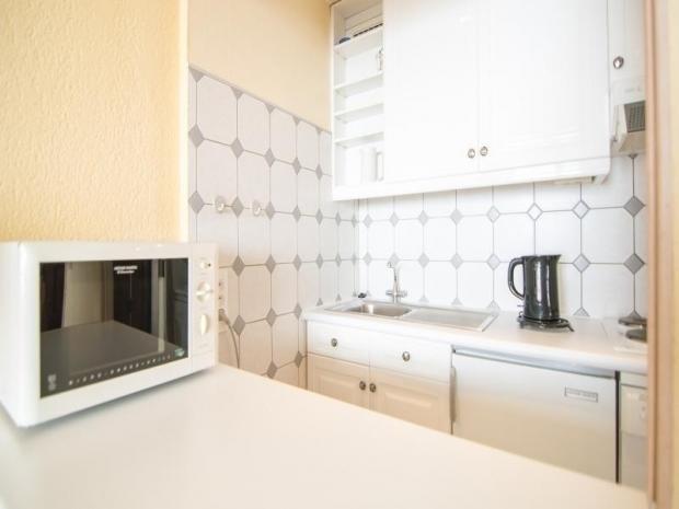 Cuisine : plaques électriques, micro-ondes, four, réfrigérateur et lave-vaisselle.