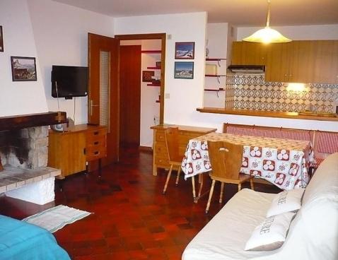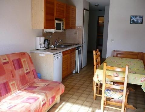 Apt 2 pièces 40 à 45 m2. Séjour/salle à manger avec 1 divan-lit double et TV. 1 chambre avec 2 couchages. Cabine avec 2 couchages. Coin cuisine (4 plaques de cuisson, four, four micro-ondes). Bain/WC. Chauffage électrique.