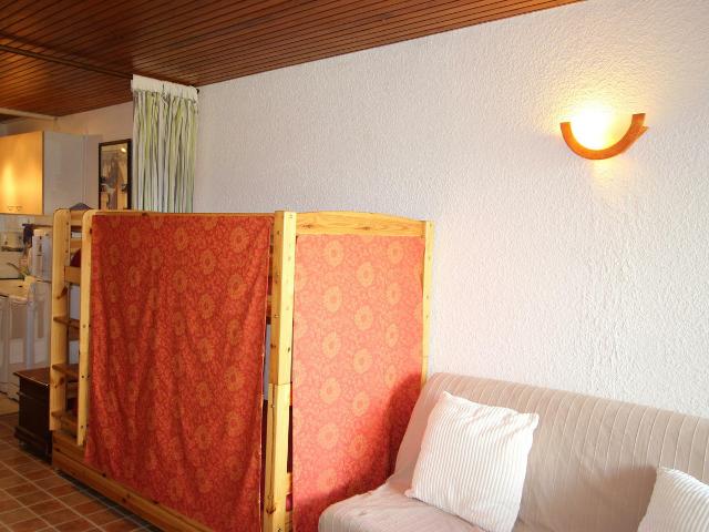 Un canapé BZ, deux lits superposés, télévision.