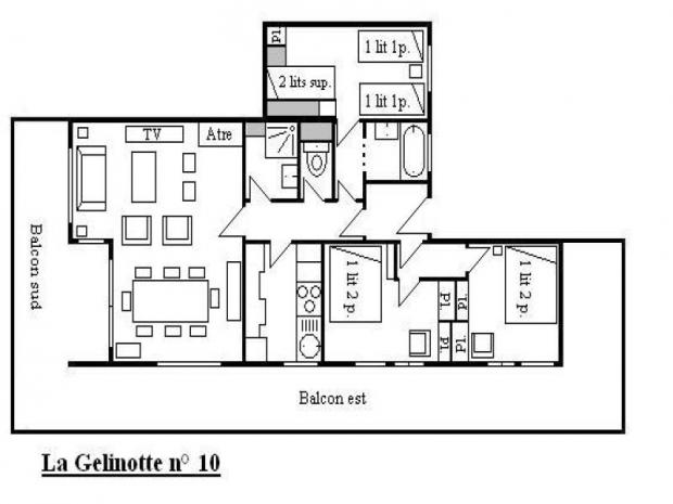Appartement 8 personnes, 3ème étage,loggia sud balcon est/nord, ascenseur, casier à skis. Parking devant la résidence.
