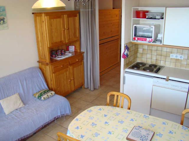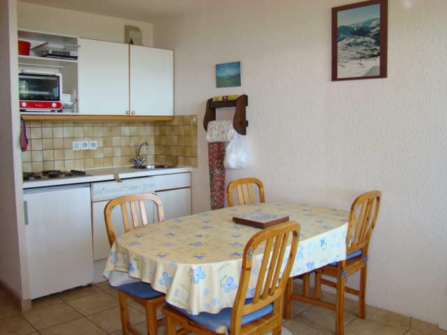 Appartement de type 2 composé d'une entrée, coin montagne avec lits superposés en 90 (2 couchages), une chambre avec lit double en 140 (2 couchages), SdB, wc, kitchenette équipée ouverte sur séjour avec canapé convertible en 140 (2 couchages). Balcon, casier à ski, à deux pas des remontées mécaniques.