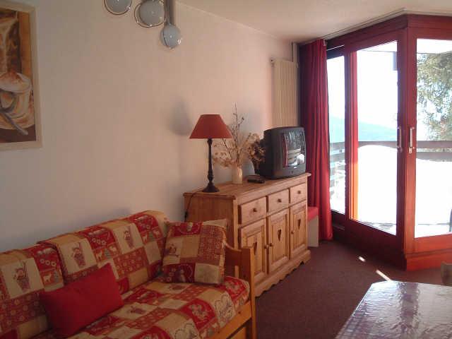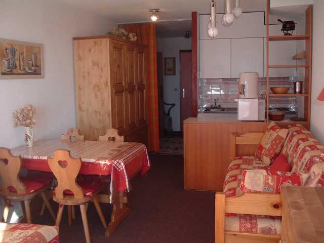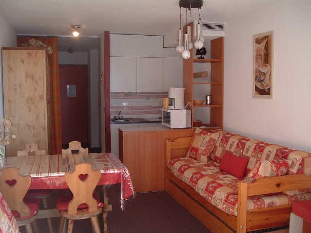 Studio coin montagne de 27 m², 4 personnes, comprenant un coin montagne à l'entrée avec 2 lits simple rabattables, un séjour avec 1 canapé-lit convertible 2 pers. et 1 canapé-lit gigogne, télévision, coin cuisine avec 2 plaques électriques, four/micro-ondes, une salle de bain avec baignoire et wc séparés.