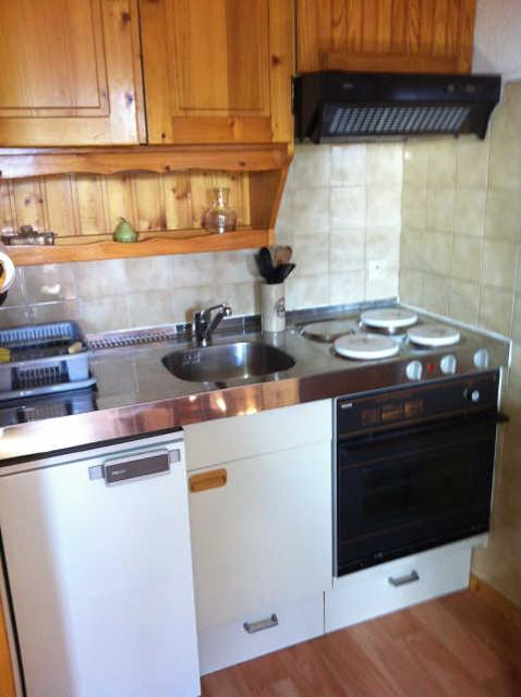 Jolie Studio 21 m² pour 4 personnes, avec à l'entrée 2 lits superposés, un séjour avec canapé clic-clac, coin repas, télévision, kitchenette avec plaques électriques, four multi-fonctions, une salle de bain avec baignoire et wc séparé.