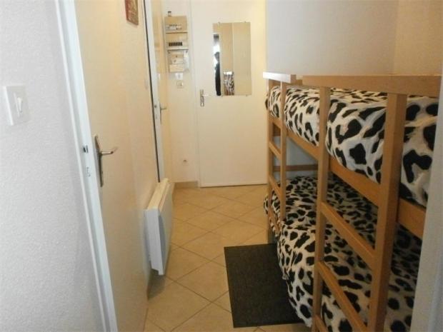 Entrée avec 2 lits superposés séparée du séjour par une porte
