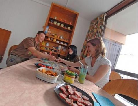 Vous serez logés dans des studios 4 personnes cabine. A noter : le couchage en hauteur ne convient pas à des enfants de moins de 6 ans. Décret n°95 949 du 25/08/1995. Entièrement équipés avec: