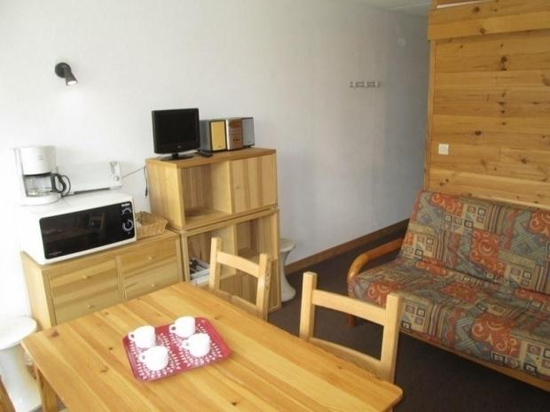 Joli studio 4 personnes avec alcove, 26 m2 environ, exposition sud avec balcon situé dans un immeuble au pied des pistes l'hiver, au milieu des estives l'été.
