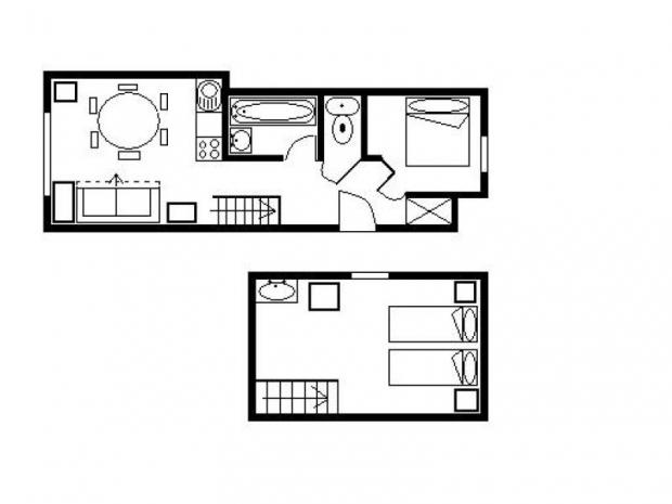 Appartement de 3 pièces (dont 1 mezzanine) , de 44 m², pour 4/5 personnes.