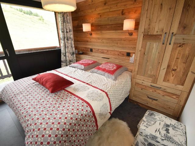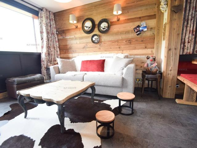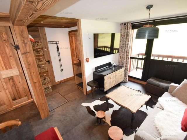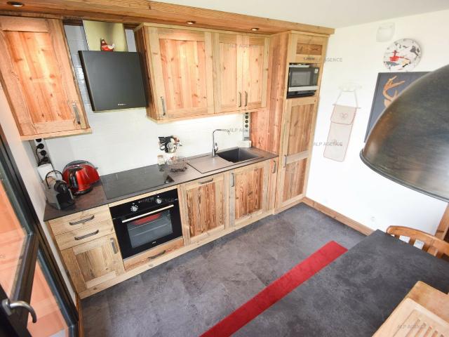 Bel appartement de 5 pièces, 60m2 env + sous pente 20m2 utiles env, en triplex, pour 8/10 pers. 2ème étage sans ascenseur, balcon avec belle vue sur les pistes - Étage intermédiaire : séjour avec coin repas, coin salon, 1 canapé-lit convertible 160cm. Cuisine ouverte : four, four micro-ondes, lave-vaisselle, réfrigérateur, 4 plaques induction, Nespresso (dosettes non fournies) hotte. 1 WC séparés, Lave-linge/séchant - ETAGE HAUT : Mezzanine ouverte : 1 lit double 140cm - CH 1 : sous pente : 1 lit double 140cm, TV - Rangements - Salle de douche : douche + WC inclus - ETAGE BAS : CH 2 : 1 lit double 160cm - TV, placard - CH 3 : 1 lit double 140cm - TV - SDB : baignoire - WC séparés -Sols : lames pvc - Ménage de fin de séjour, draps, serviettes et forfaits ski en option. ANIMAUX NON ADMIS - Équipement musique - WIFI inclus - Volets roulants - 3 casiers à skis - Très Bel appartement chaleureux, rénové style contemporain Montagne, très belle vue sur Pistes.