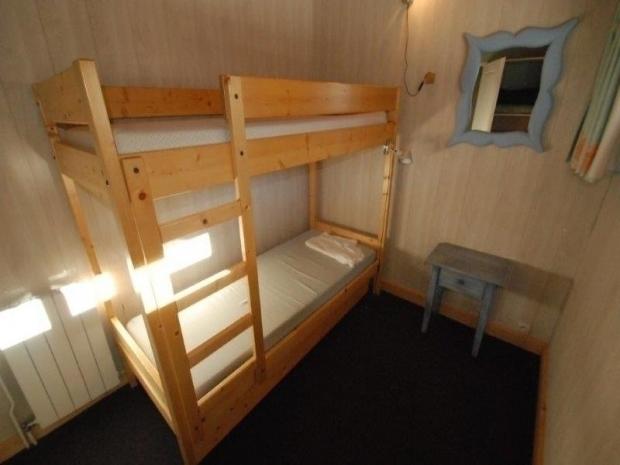 Chambre n° 2 : deux lits superposés et un lit d'appoint en canapé gigogne.