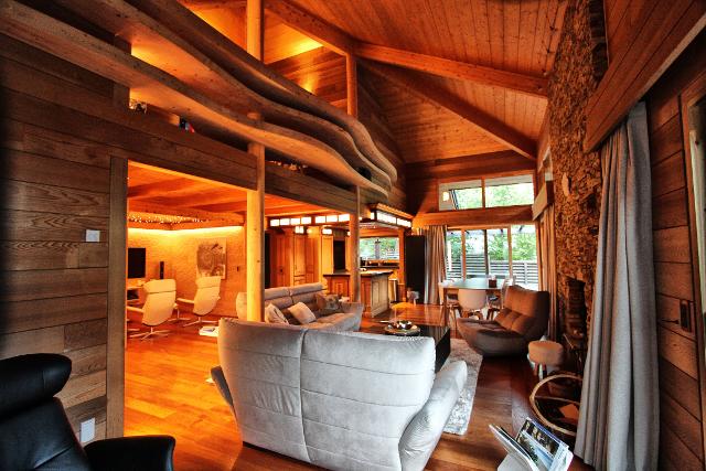 Grand coin bureau en mezzanine. Les espaces de vie et les volumes imposants vous permettrons de profiter pleinement du chalet et de ses extérieurs hiver comme été.
