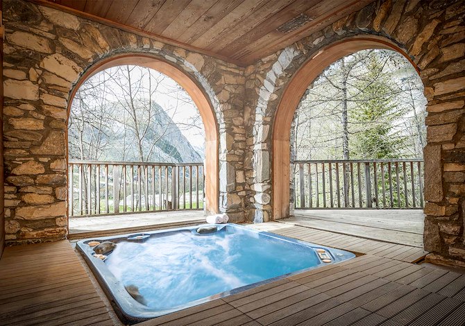Chalet : Composé de 4 chambres spacieuses et confortables. Sur place à disposition : salle de cinéma, cheminée, WIFI et bain à remous privatif