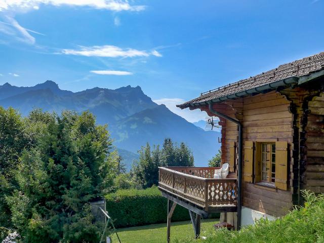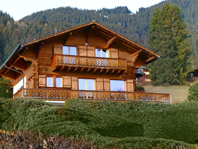 Chesières à 1 km de Villars: Chalet accueillant "L'Eau-Vive", de 3 étages, environné par les arbres. À 200 m du centre de Chesières, situation tranquille, ensoleillée, surélevée, dans une rue, orientée sud. A usage privé: terrain à l'état naturel 300 m2. En hiver, merci de prévoir des chaînes. Sentier en escalier (30 marches) jusqu'à la maison. Magasins 1.5 km, magasin d'alimentation 500 m, restaurant 400 m, boulangerie 500 m, centre à 20 minutes à pieds, arrêt du bus 300 m, gare ferroviaire "Villars-Bretaye" 2 km, piscine couverte 1.2 km, centre thermal "Lavey-les-Bains" 19 km. Port plaisance 19 km, terrain de golf (18 trous) 7 km, tennis couvert 2.8 km, centre sportif 2.8 km, train de montagne 2 km, télécabine 1.7 km. Arrêt du ski-bus 300 m, école de ski 1.9 km, école de ski d'enfants 2.8 km, patinoire 1.4 km, jeux pour enfants 550 m. Service de navette gratuite desservant le domaine skiable Villars.